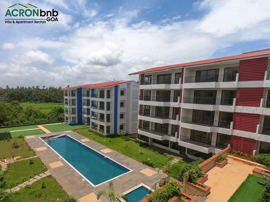 This tranquil haven in the heart of Calangute is a stone’s throw from Calangute Beach. It shares close proximity to many popular eateries, clubs, & supermarkets! It is set in a 24-hour secure gated community that houses 2 large swimming pools, a gym, a steam & sauna room, a yoga room, an outdoor Jacuzzi, & lush gardens! The private 1 BHK Apartment features 1 double bed, split air-conditioner, ensuite bathroom, flat-screen TV, kitchenette, closet space & attached balcony with outdoor seating!